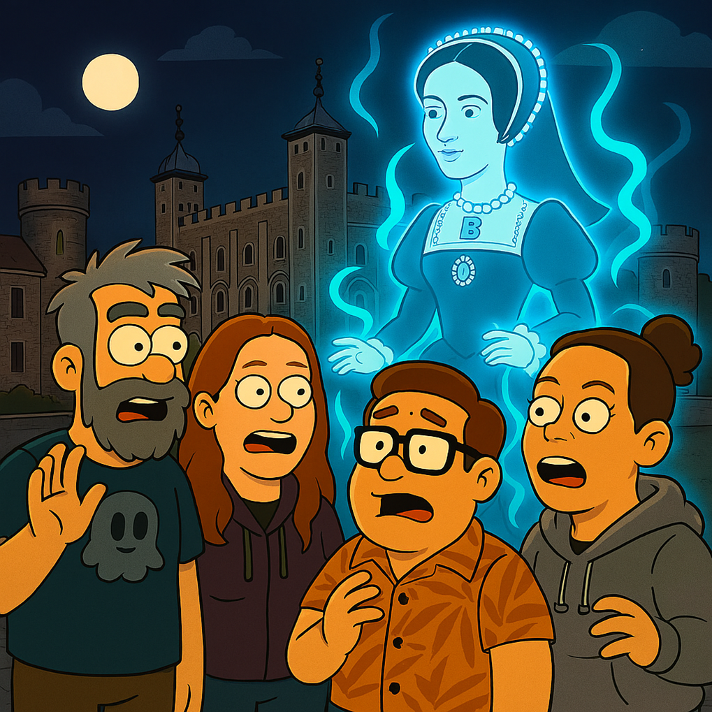 The Boo‑Foons team are joined this week by the brilliantly chaotic Bantering Banshees for a deep dive into one of England’s most enduring ghost stories: the many, many sightings of Anne Boleyn. Few historical figures have left such a powerful imprint on the landscape, and even fewer are said to walk it quite so widely. From the quiet lanes of Norfolk to the stone corridors of the Tower of London, Anne’s spirit is reported in more locations than almost any other figure in British folklore.